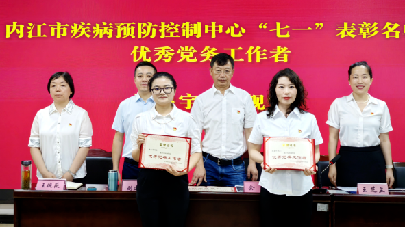 为庆祝中国共产党成立104周年,进一步弘扬伟大建党精神,充分发挥先进典型引领作用。7月1日,内江市疾控中心隆重举行庆祝中国共产党成立104周年暨“两优一先”表彰大会。中心党委副书记王芝兰主持会议,党委领导班子成员及全体党员干部参加大会。