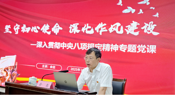 中心党委书记余忠以《坚守初心使命 深化作风建设》为题,为全体党员干部讲授专题党课。余忠同志深刻阐释了中央八项规定精神的时代价值和深远意义,系统分析了作风建设面临的新形势新挑战,通过典型案例开展警示教育,并就深化作风建设提出四点要求。一是要筑牢思想根基,拧紧理想信念总开关;二是要完善制度体系,织密权力运行防护网;三是要强化责任担当,压实管党治党责任链;四是要培育新风正气,营造干事创业好生态。他强调,全体党员干部要始终做到知敬畏、存戒惧、守底线,让中央八项规定精神真正内化于心、外化于行,以优良作风护航疾控事业高质量发展。