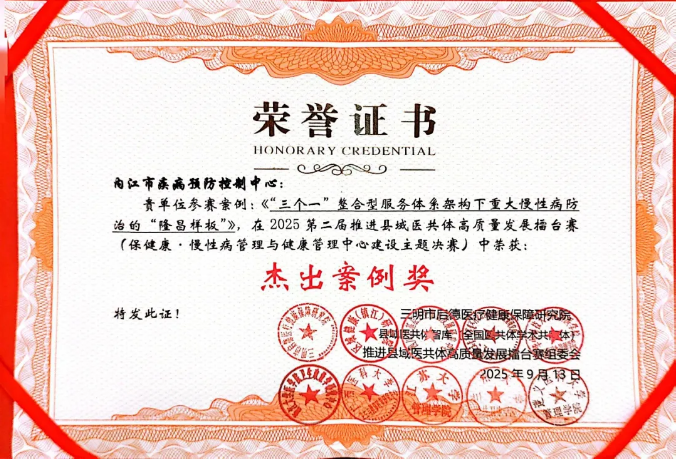 在9月13日举行的全国第二届推动县域医共体高质量发展擂台赛“慢性病管理和健康管理中心建设”主题决赛上,内江市疾控中心提交的《“三个一”整合型服务体系架构下重大慢性病防治的“隆昌样板”》案例在比赛中表现卓越,成功突围,斩获“杰出案例奖”,载誉而归。
