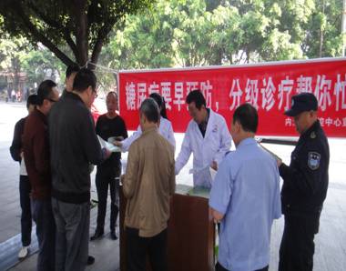 活动现场通过悬挂宣传横幅、设立咨询台、发放宣传资料等集中宣传方式,为群众讲解糖尿病预防知识,倡导树立健康的生活行为方式;深入资中县重龙镇元兴村,开展糖尿病等健康义诊、咨询活动,为贫困群众送健康知识;依托单位门户网站、微博、微信开展糖尿病知识网络宣传。