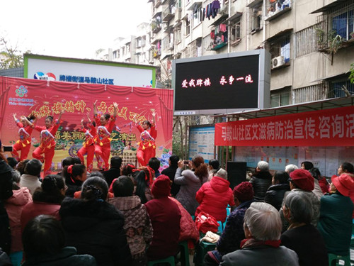 新春佳节来临前夕,为营造喜庆欢乐祥和的节日气氛,倡导全社会共同参与的防艾氛围,内江市疾控中心联合市中区疾控中心和市中区牌楼街道马鞍山社区于1月15日共同开展了一次“送文化、送健康”的艾滋病防治宣传大型文娱表演活动。活动在马鞍山社区举行,来自马鞍山社区的居民以及市、区疾控中心工作人员,社区卫生院医务人员共计500余人参加现场活动。
