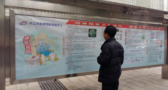借助全市的健康教育专栏,市疾控中心统一制作21块艾滋病防治宣传专栏,辐射建成区范围所有农贸市场和部分居民小区。