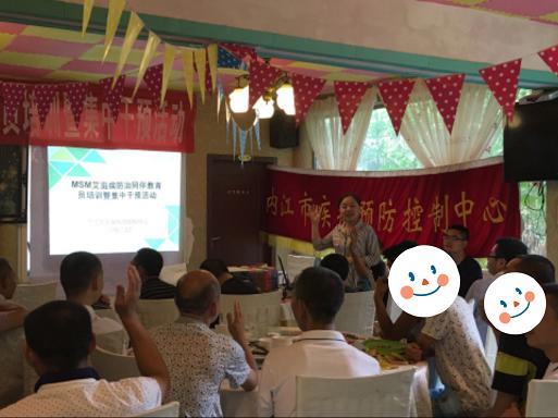 市疾控中心艾滋病防控人员借助男同组织开展干预活动。