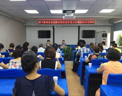夏秋季蚊媒密度高、活动度增加,为寨卡病毒病、乙脑等虫媒传播传染病的流行提供了条件,同时,洪涝灾害期间,菌痢、伤寒副伤寒等肠道传染病发生的风险也在增加。为切实做好寨卡病毒病、乙脑、菌痢等夏秋季重点传染病防控工作,市疾控于7月19日举办了寨卡病毒病桌面推演暨夏秋季重点传染病防控技术培训班。各县(区)疾控中心分管领导、相关科室负责人、工作人员和县级及以上医疗机构防保科科长共计40余人参加了培训。