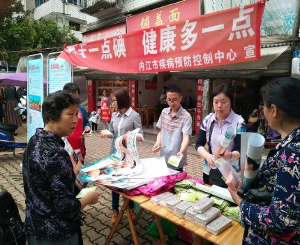 为提高公众对碘缺乏病的认识,普及碘缺乏病防治知识,根据内重传办《转发关于开展2017年防治碘缺乏病日活动的通知》(内重传办发[2017]6号)文件精神要求,5月15日,内江市疾病预防控制中心联合内江市盐务局、东兴区疾病预防控制中心、西林社区服务中心等单位在东兴区榕树街农贸市场开展了以 “每天一点碘,健康多一点” 为主题的防治碘缺乏病日宣传活动。