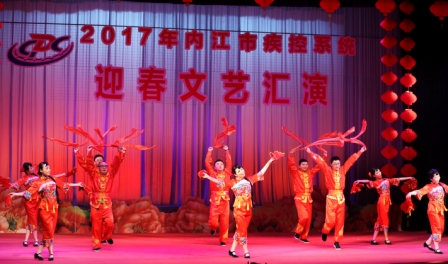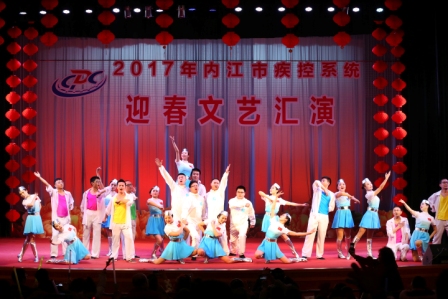 内江市疾控系统为丰富职工业余文化生活,打造“书香疾控”文化建设,展示疾控人员的风采,激发疾控人在新年中的新行动。2017年1月17日晚7:30分,内江市疾控系统迎春文艺汇演“疾控之歌”在内江市川剧场拉开了帷幕。 节目形式多样,均为各县区疾控中心的干部职工们自编自导自演,通过诗歌、相声、舞蹈、大合唱等形式,将疾控工作中的“防治艾滋病宣传”、“当好人民的健康卫士”“应急反应”等内容巧妙融合,充分展示了疾控系统干部职工开拓创新、昂扬向上、奋发有为的精神风貌。