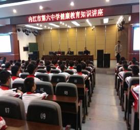 2017年11月15日下午,内江市疾病预防控制中心派出3名专业技术人员在内江六中大会议室进行了健康知识讲座,向300余名初一新生普及学生常见病、流感、艾滋病等相关疾病的预防知识。