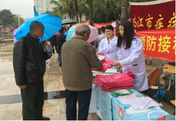 4月25日上午,市疾控中心组织城区11家预防接种单位在东兴区大佛寺广场开展了集中宣传活动,活动现场,虽然天下着小雨,但前来咨询的群众络绎不绝,工作人员一一解答群众咨询;现场还设置了有奖知识问题环节,通过知识问答,领取预防接种主题宣传品,吸引了大批群众的参与,现场气氛非常热烈。据统计,活动现场累计接受咨询300余人次,发放各种宣传折页、宣传画、宣传单600余份,发放小礼品500余份。