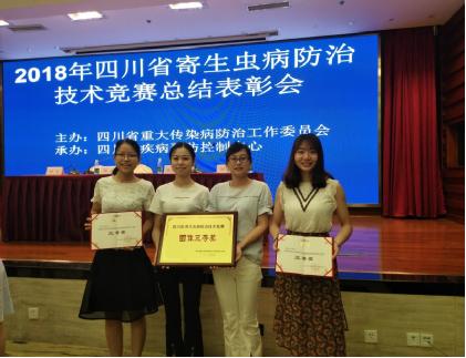 此次竞赛分为理论知识与技能操作,涵盖寄生虫生活史、病原学诊断、防治措施、实验室检测方法、疟原虫血涂片制作与染色技术、改良加藤片制作、寄生虫虫卵镜检鉴别及疟原虫镜检鉴别技术等内容。经过1天的实力比拼和激烈角逐,内江市疾控中心参赛选手高丹荣获个人理论和个人综合技能考核三等奖,在全体参赛选手的共同努力下内江市代表队获“四川省寄生虫病防治技术竞赛团体三等奖”。