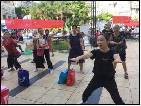 仪式结束后,区疾控中心、各社区卫生服务中心及齐力堂药店的工作人员共40余人在现场组织了三减三健——减油、减糖、减盐、健康体重、健康口腔、健康骨骼专项行动及健康知识宣传、推广健康支持工具、健康咨询及义诊活动。参加活动的民众共计800余人,发放健康知识小手册2000余册,健康生活方式支持工具共500余套。活动中,由专业技术人员组织了辖区老年人开展了“健骨操”现场教学活动,帮助了社区老年人强健骨骼、增加协调性。