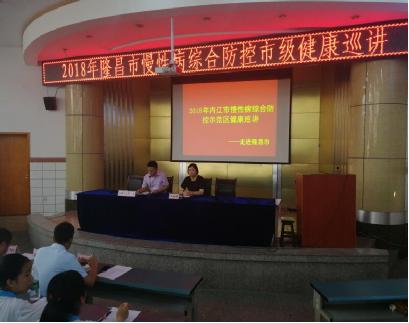 为推进健康内江建设,促进我市慢性病综合防控示范区建设,提高群众慢性病核心知识知晓率和行动率,6月28日,市慢性病防控健康巡讲专家组在隆昌市开展了慢性病综合防控示范区市级健康巡讲,拉开了2018年我市慢性病健康巡讲的序幕。隆昌市党政机关、医务人员、中小学生、社区居民共计150余人参加了此次巡讲活动。