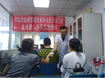 在新中国成立70周年到来之际,内江市疾控中心戒毒药物维持治疗门诊在2019年9月26日组织开展了一期“迎国庆”在治病人关怀支持活动。