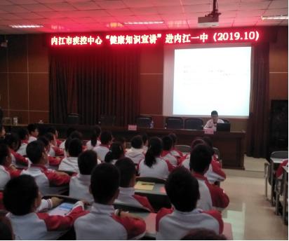 为加强病媒生物防制及健康素养知识宣传,倡导学生积极参与环境治理并加强身体锻炼,养成良好的健康习惯,2019年10月31日,内江市疾控中心专业人员走进内江市第一中学校,开展了题为病媒生物防制及中国公民健康素养主题健康讲座。学校老师、学生共计300余人聆听了讲座。