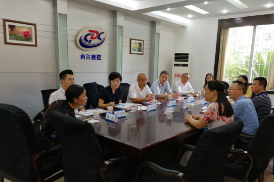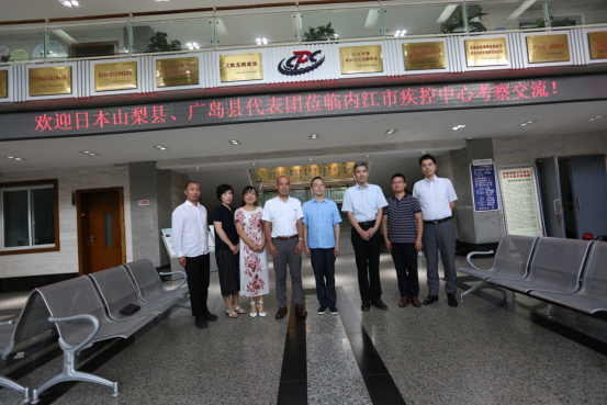 2019年8月4日,由日本山梨县观光交流课(外事办公室)课长小泉嘉透、高级主管矢竹清美,广岛县国际课(外事办公室)主查大田亮组成的日本山梨县、广岛县代表团莅临内江市疾控中心考察交流。省外事办处长周明辉,市疾控中心党委书记、主任李静,党委副书记、工会主席朱笛,中心副主任徐勇全程陪同。