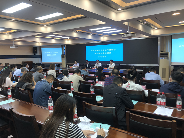 为全面加强学生健康监测和干预,落实学校常见病和传染病防控等工作,维护学校师生身体健康,6月3日,由市卫生健康委、市教育局联合主办,市疾控中心承办的全市学校卫生启动会暨监测技术培训班在市卫健委七楼会议室举行。省疾控中心专家周亮、市卫生健康委副主任罗仁福、市教育局副局长封武到会指导。培训由市疾控中心党委委员、副主任杨军主持。市教育局和市卫生健康委相关科室负责人、各县(市、区)卫生健康局、教体局分管领导和相关科室负责人、各县(市、区)疾控中心分管领导和相关科室负责人、市直属学校分管领导共计60余人参加培训。