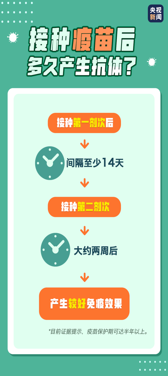 近日,我国各地正在有序推进重点人群新冠病毒疫苗的接种。自2020年12月15日新冠病毒疫苗重点人群接种工作实施以来,疫苗接种量已超1000万剂次,新冠病毒疫苗也成为了社会关注的热点。 对于疫苗,很多网友仍有担心:产生抗体要多久?疫苗保护效力79.34%意味着什么?如果有慢性病,还能打疫苗吗? 今天,通过一组图,一起了解。