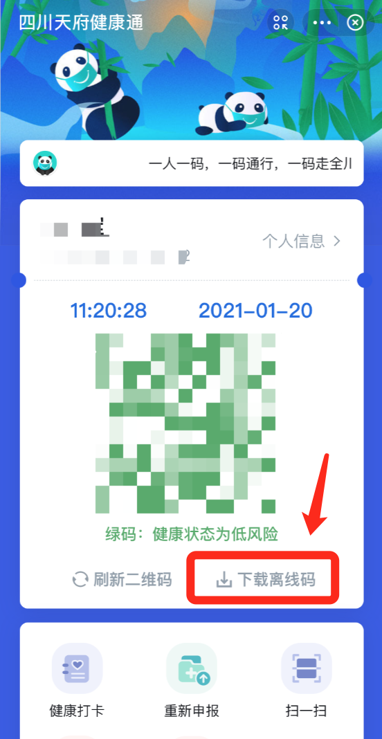 1月11日,四川正式上线全省统一的健康码——“四川天府健康通”。“四川天府健康通”由省大数据中心负责开发,是个人健康状况的二维码电子凭证和疫情防控查验依据,一人一码,亮码通行。