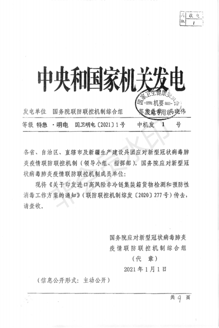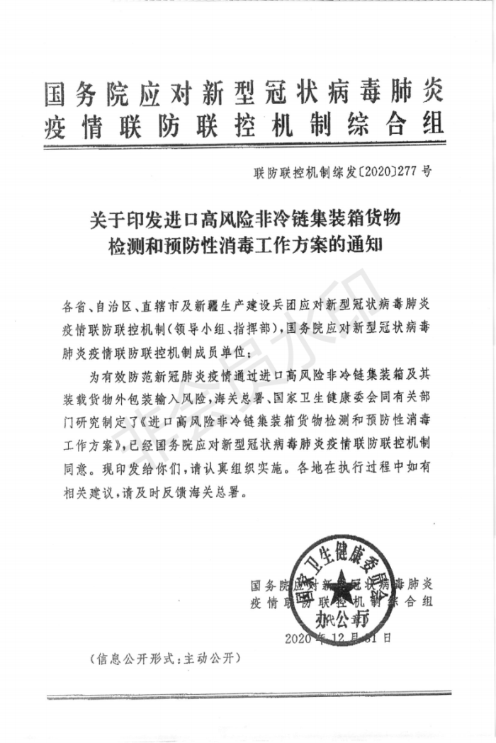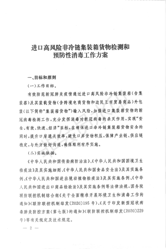 关于印发进口高风险非冷链集装箱货物检测和预防性消毒工作方案的通知