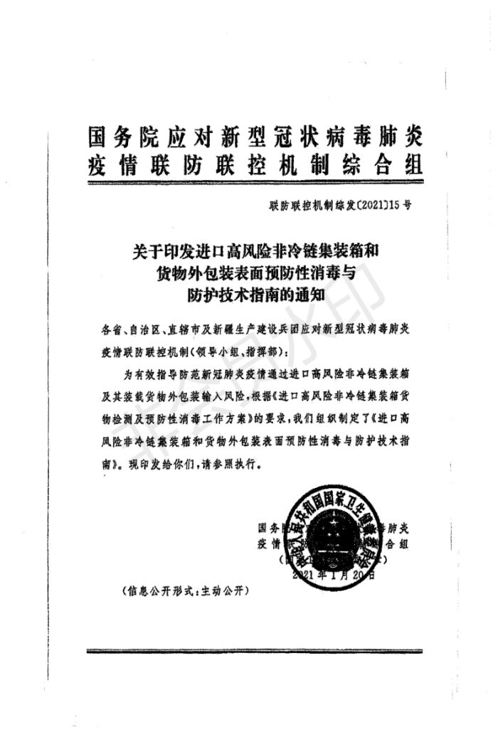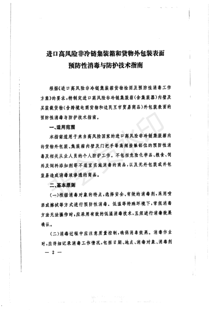关于印发进口高风险非冷链集装箱和货物外包装表面预防性消毒与防护技术指南的通知