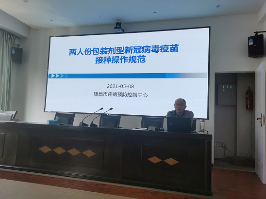 从2020年12月起,全市开展新冠疫苗接种,共接种新冠疫苗4.5万余剂次,目前1支2人份装新冠疫苗即将上市,为规范我市新冠疫苗接种工作,杜绝接种差错和接种事故,隆昌市疾病预防控制中心于2021年5月8日再次举办了隆昌市新冠疫苗接种技术培训班,全市各镇中心卫生院和社区卫生服务中心公共卫生科副科长、免疫规划工作人员,疫苗管理人员和市直医疗机构新冠疫苗接种负责人,疫苗管理工作人员、接种工作人员累计64人参加了此次培训。