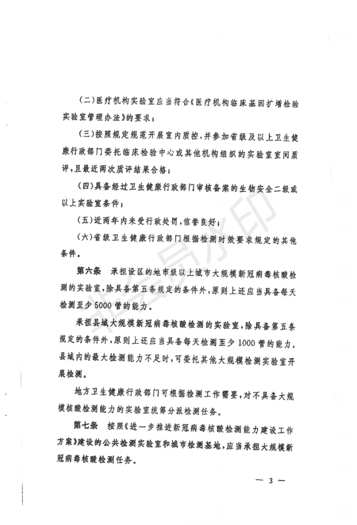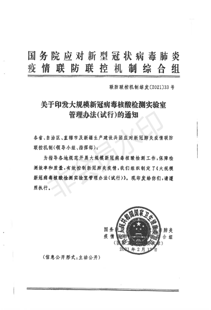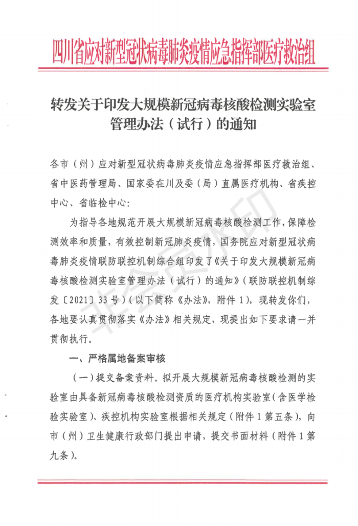 省应对新冠肺炎指挥部医疗救治组关于转发印发大规模新冠病毒核酸检测实验室管理办法(试行)通知