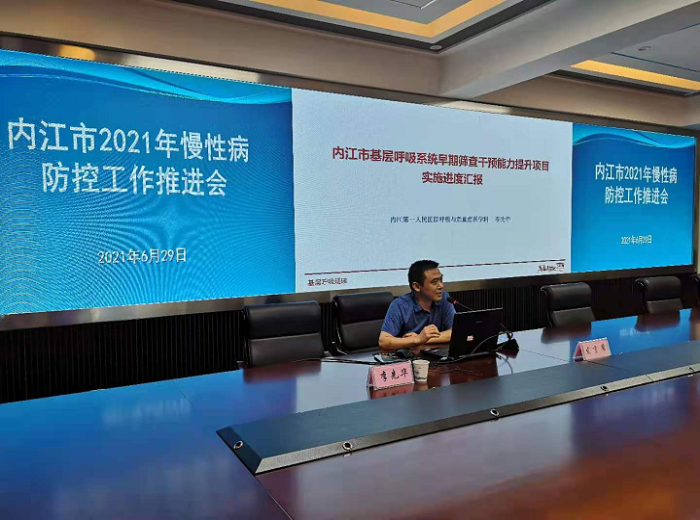 内江市第一人民医院呼吸科主任李先华通报了基层慢性呼吸系统疾病早期筛查能力提升项目进展情况。