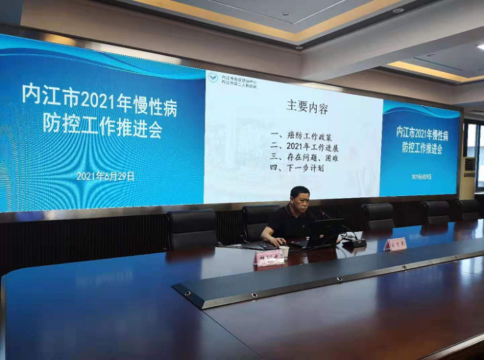 2021年6月29日,内江市召开了2021年慢性病防控工作推进会。内江市卫健委副主任罗仁福、内江市疾控中心副主任徐勇、内江市第二人民医院副院长蒋鸥出席会议,会议由内江市疾控中心副主任徐勇主持。
