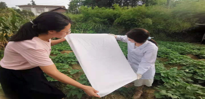 7月26日,专家组赶赴威远县连界镇和观音滩镇,深入乡村开展蜱虫监测。蜱虫监测包括了寄生蜱和游离蜱。监测人员对乡村放养牛开展了寄生蜱的监测,监测人员在省疾控中心胡雅劼科长、钱薇萍主任技师等专家悉心指导下对牛的耳背、耳窝、腋窝和腹部等部位进行了仔细地摸排,搜寻蜱虫的踪迹,共捕获寄生蜱2只。随后,监测人员对牛棚周边及牛放牧区域拖蜱,对自然环境中的游离蜱进行调查。监测期间,省市县疾控病媒生物防控专家为黄牛饲养户和村民进行了蜱虫等病媒生物防制知识现场宣教,强调要做好个人防护,并解答了饲养户牛棚蜱虫、蚊虫防制问题,提出了行之有效的建议,饲养户和村民对专家组成员称赞不已。