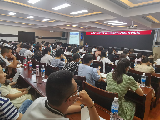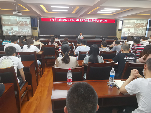 为落实《内江市应对新型冠状病毒肺炎疫情应急指挥部办公室关于进一步规范重点人群核酸检测工作的通知》(内疫办发【2021】100号)的要求,进一步规范新冠肺炎标本采集、标本运输、实验室检测等工作,保障检测质量,提高检测效率,8月11日市疾控中心举办了新冠病毒核酸检测培训班,特邀华西公共卫生学院许欣教授莅临授课。各县(市、区)重点人群核酸检测工作专班成员和疾控中心新冠病毒核酸采样、检测、运转人员共计140余人通过线上线下参加此次培训。