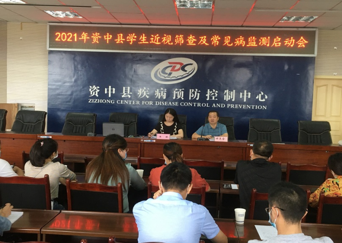 为进一步加强和落实好全县学校卫生工作,保障师生的身体 健康,根据《传染病防治法》、《学校卫生工作条例》等相关法律法规及规章的规定,按照资中县卫生健康局和资中县教育和体育局关于印发《2021年资中县学生近视及其他重点常见病和健康因素监测工作方案》(资卫法〔2021〕20号)文件要求,2021年9月6日,县疾控中心组织县人民医院、县中医医院、龙结卫生院、水南卫生院、龙结中心校、资中二中、水南实验小、龙结中学、龙结中心幼儿园、水南二幼在中心七楼会议室召开了2021年学校卫生监测工作启动会。邀请县教育和体育局相关领导到会指导。会议由县疾控中心副主任甘连金主持,县疾控中心学地股股长梁英凤简要总结了2020年监测工作情况,并讲解了今年工作监测技术方案重点、难点,安排部署了今年工作任务;县教体局潘敏对2021年学生近视及常见病监测工作作了要求:一是各相关单位要高度重视,充分认识监测工作的目的、意义;二是切实履职,做好人员技术培训、物资准备、后勤保障工作;三是各参与单位密切配合,严格按照技术方案,按时保质保量完成工作任务;四是做好资料收集及整理工作,顺利完成2021年学校卫生工作监测目标任务。