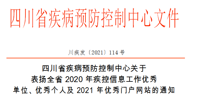 近日,四川省疾控中心对2020年疾控信息工作优秀单位、优秀个人及2021年优秀门户网站进行表扬,我市2项工作及2名个人获得省级表彰,这是我市连续四年获得此佳绩。