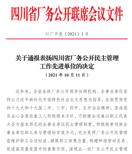 近日,在四川省总工会办公室《关于通报表扬四川省厂务公开民主管理先进单位的决定》中,内江市疾病预防控制中心荣获“四川省事务公开民主管理先进单位”称号。