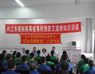 活动通过专家讲座、摆放展板、张贴海报、咨询检测,以及发放 “红丝带健康包”等方式,向市看守所和强戒所全体公安干警、羁押人员普及了艾滋病预防措施以及戒毒药物维持治疗政策等知识,并对羁押人员关于戒毒药物维持治疗和艾滋病抗病毒治疗等相关疑问进行了详细解答。同时,就进一步完善戒毒药物维持治疗转介机制和羁押场所艾滋病感染者的告知、随访及抗病毒治疗等事项,市疾控中心与 看守所和强戒所负责人进行了商讨。