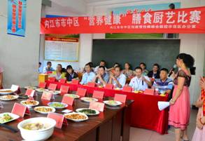 随着社会的发展,饮食的营养健康越来越被人们所重视,在全民健康生活方式行动中,合理膳食是全民健康生活方式行动第一核心信息。它是保持人体营养平衡,维持健康体重的重要因素,不合理的膳食,营养过度或不足,都会给健康带来不同程度的危害。为指导市中区社区居民合理膳食,围绕“和谐我生活,健康内江人”的主题,内江市市中区成功举办了以“低油低盐、吃出健康”为主题的“营养健康”膳食厨艺比赛,来自全民健康生活方式行动的示范餐厅、示范食堂以及全区六个街道办事处选派的居民代表,共计3小组、30人参与了比赛。内江市创建慢性病综合防控示范区办公室邀请了3位专业营养师作专家评委,10位各级部门单位、各街道办事处相关领导作大众评委。