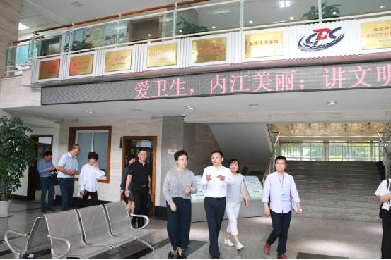 2019年5月25日,省卫健委主任何延政一行在内江市市长郑莉的陪同下,对内江市疾病预防控制中心进行了现场调研。内江市市委常委、宣传部部长、统战部部长潘梅,市政府副市长陈朗、市卫健委主任刘波全程陪同。