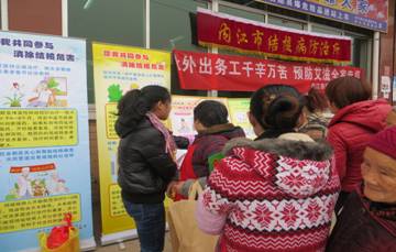 活动现场气氛活跃,车站候车的大量外出务工人员纷纷前来阅览宣传展板,积极索取宣传资料并认真阅读,专注倾听现场宣传工作人员的讲解,耐心接受问卷调查,并且还不时向工作人员进行咨询。