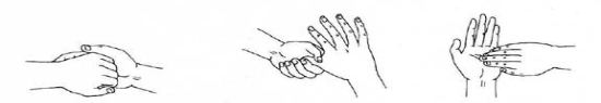 | 4弯曲手指关节在掌心揉搓 | 5拇指在掌中揉搓 | 6指尖在掌心中揉搓 |