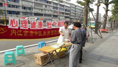 2014年10月10号是第二十二个“世界精神卫生日”,为了提高广大人民群众对精神卫生日的认识和重视,有效预防精神疾病特别是重性精神疾病,内江市市中区慢病综合防控示范区办公室紧紧围绕“心理健康,社会和谐”的活动主题,在玉溪路开展了“世界精神卫生日”健康咨询宣传活动。