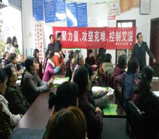 2014年12月8日,区疾控中心组织艾滋病防治工作人员在市、区共建艾滋病示范村(龚家乡桐梓村)村委会举办了艾滋病防治知识讲座,参加讲座的人员有龚家乡卫生院医务人员和桐梓村村民60余人,现场发放艾滋病宣传单、卡、册、海报等宣传资料及纸巾、毛巾、环保袋等宣传物品300余份。