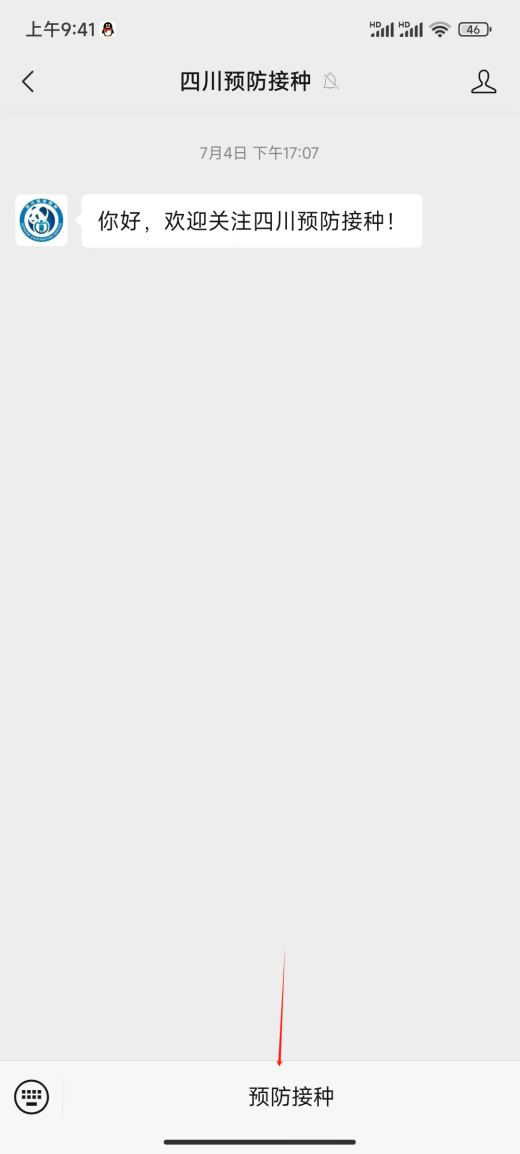 使用微信扫描或识别下方二维码,或直接搜索“四川预防接种”公众号并关注。