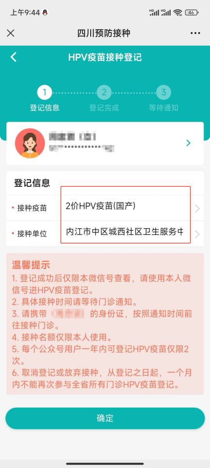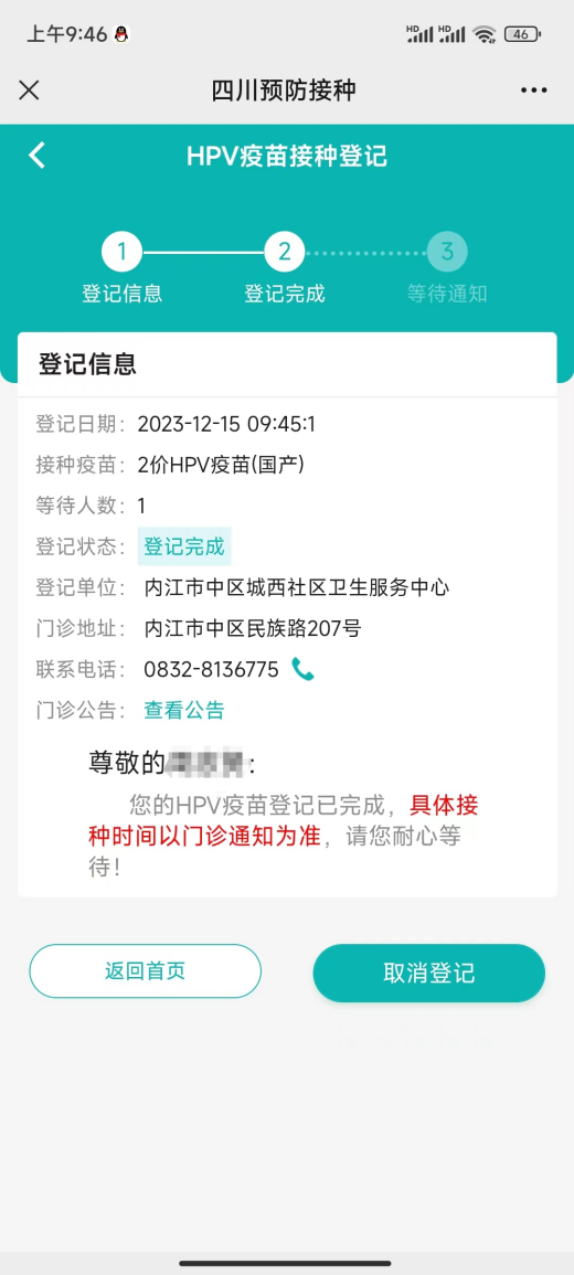 第四步:预约完成,等待接种