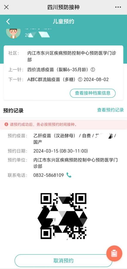 预约完成,平台会显示预约记录,到预约时间,前往接种单位即可。